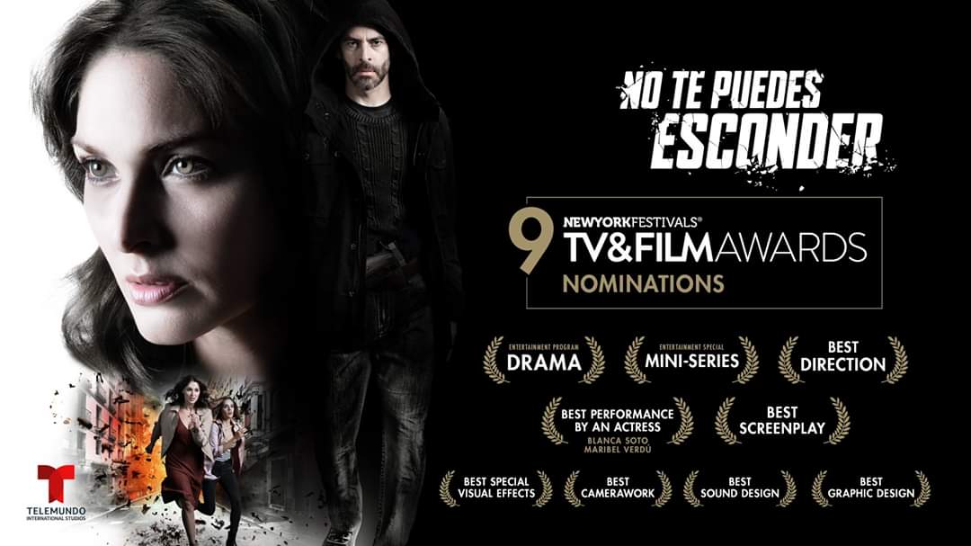 La serie NO TE PUEDES ESCONDER, realizada por ISLA AUDIOVISUAL para TELEMUNDO INTERNACIONAL y recientemente estrenada en la plataforma de NETFLIX, ha sido NOMINADA en 9 CATEGORÍAS, en los NEW YORK FESTIVALS AWARDS que se celebrarán en este 2020.